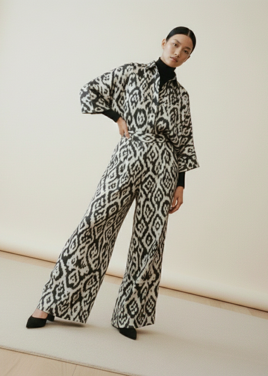 Clea Kimono Blazer Set in Black & White